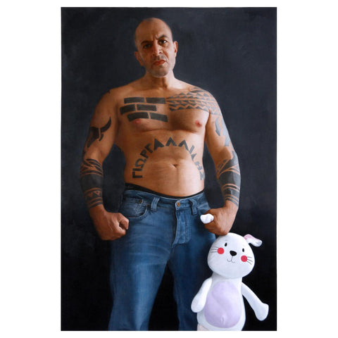Mason is probably best known for his mask. It has become a trademark, hiding his identity whilst creating a mystique which helps with promotion and publicity. He began wearing it when in 2010 he said he was going to reveal the face of the artist Banksy in an oil painting. The whole campaign was nothing more than a big marketing ploy and it worked. The supposed unveiling of Banksy courted a lot of negative publicity and the occasional death threat. Nothing he hasn’t encountered many times in his previous life but he knew the fact that he was remaining anonymous would annoy Banksy’s followers even more. Secondly, in his previous careers he has met and dealt with some extremely dangerous men. There is no risk to his security but he would rather the two worlds never meet. Also he occasionally does freelance work and its better for him if he remain in the shadows so to speak. So the mask, apart from its marketing potential allows him to hide in plain sight.