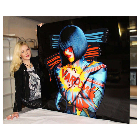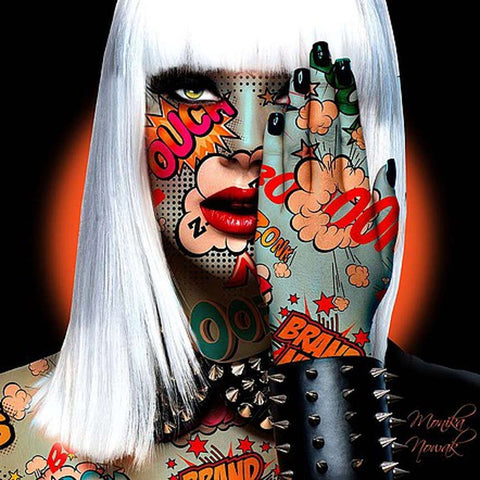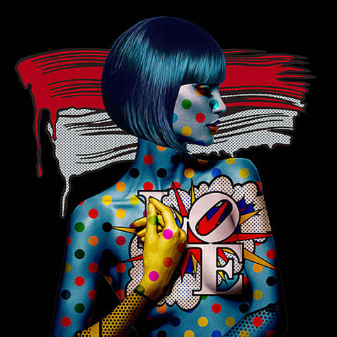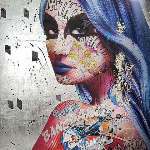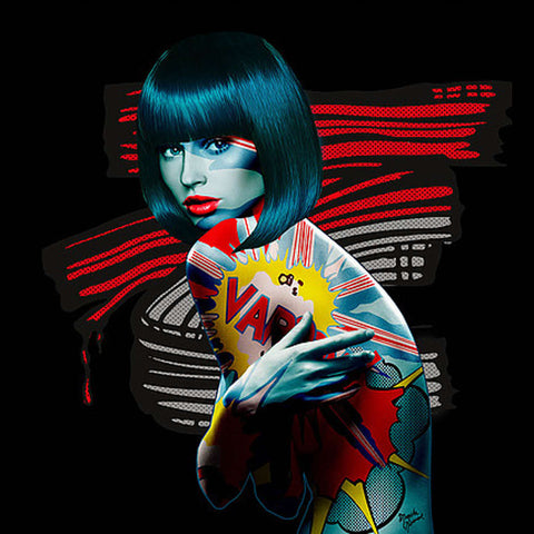 Monika's work explores her intuition: energetic, independant and proactive. Through her sexy pop heroines she expresses a certain vision of todays women. Strong but fragile. Monika's heroines are paradoxical, contradictory and excessive but also soft, wild, poetic and provocative. Monika produces her work using a combination of techniques. She has refined her use of digital media and combines it with collage and free hand elements to create a totally unique style. Monika creates her works on canvas, plexiglass & aluminium.