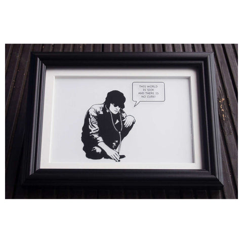 iCON's unique mix of controversy and humour insures you always have a spoonful of sugar to help the medicine go down. iCON is active on the streets of London, Berlin and Los Angeles and his unique style has gained him critical acclaim for his thought provoking pieces. iCON is a purest, holding street art culture closely to his heart and believing that art can change anything. iCON's identity remains unknown.